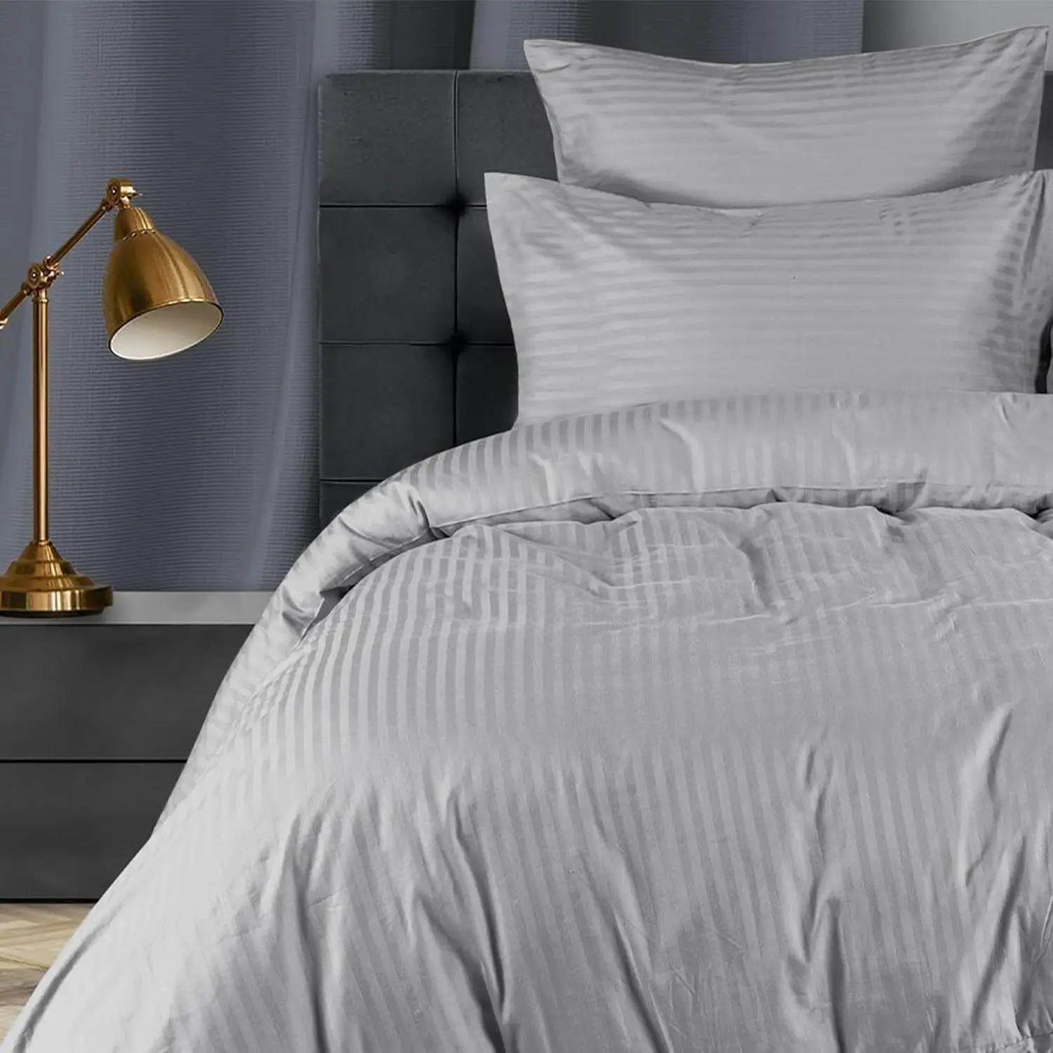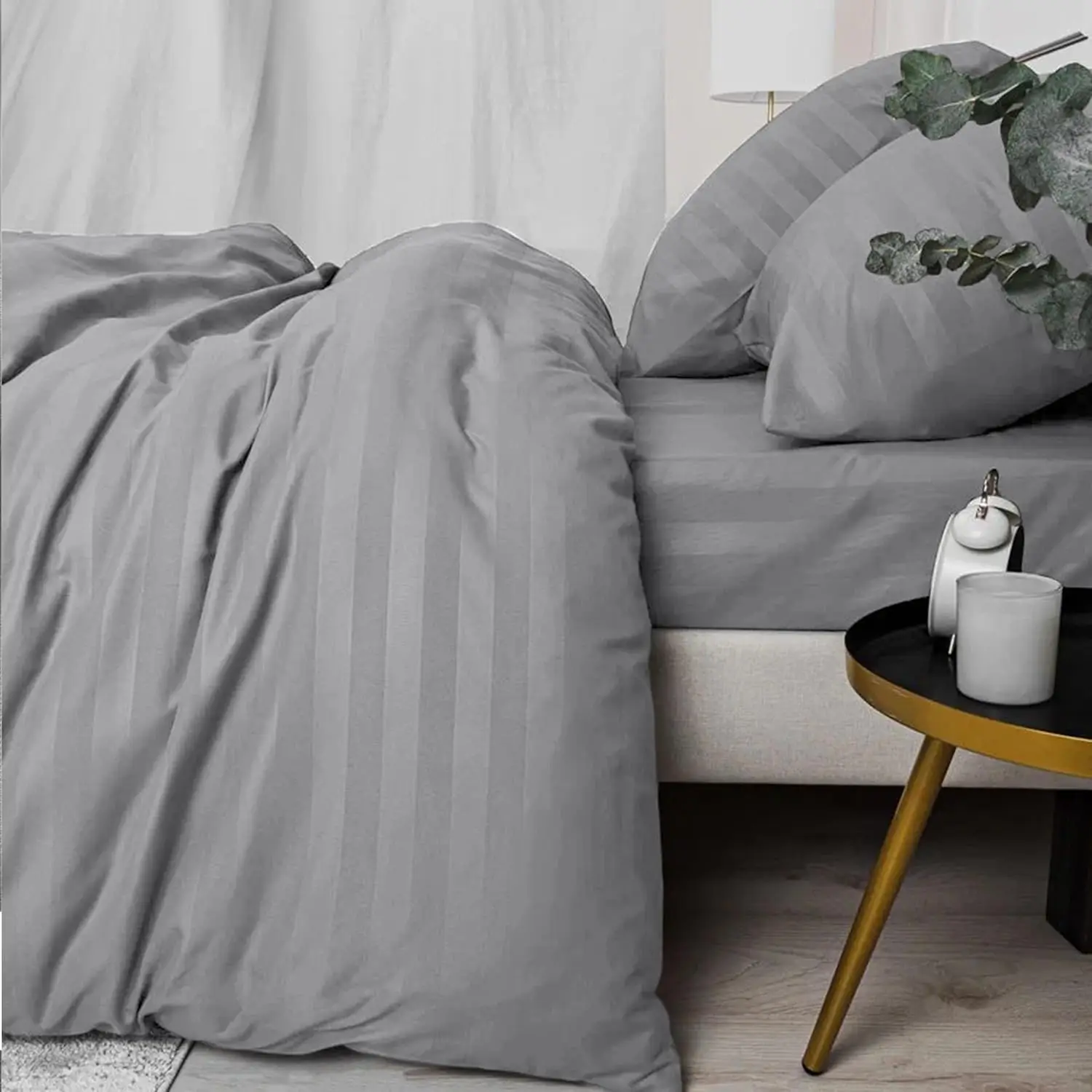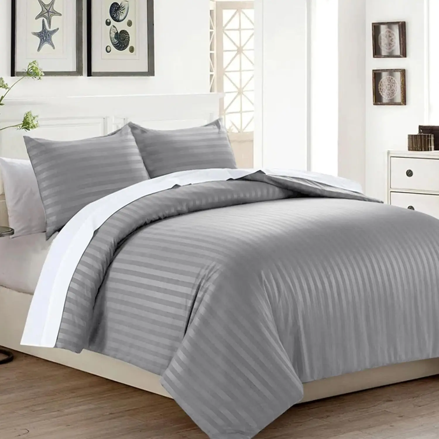 Home Mart Outlet Duvet Cover Sets Double Premium Hotel Quality Brushed Microfiber Satin Stripe Quilt Cover Set with Pillowcases Hypoallergenic Ultra Soft Microfiber (Gray, Double – 200 x 200 cm)