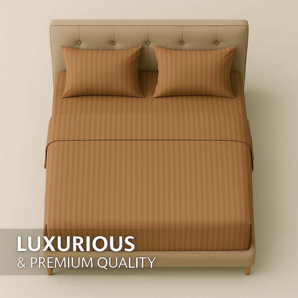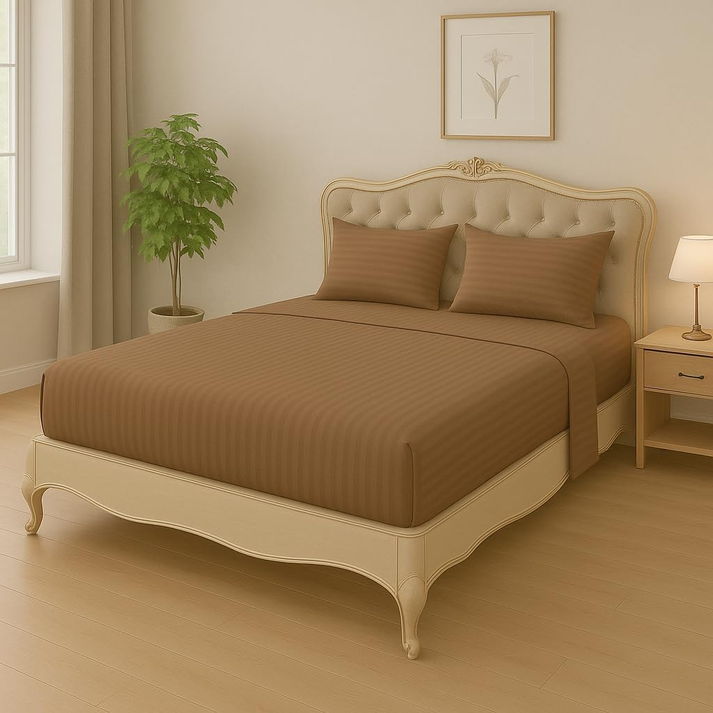 Home Mart Outlet Striped Microfiber Fitted Sheet Set – Double 120×200 cm – Brown Color – 1 Fitted Sheet & 2 Pillowcases (50×75 cm) – Deep Pocket, Soft, Durable, Wrinkle-Resistant Bedding Set