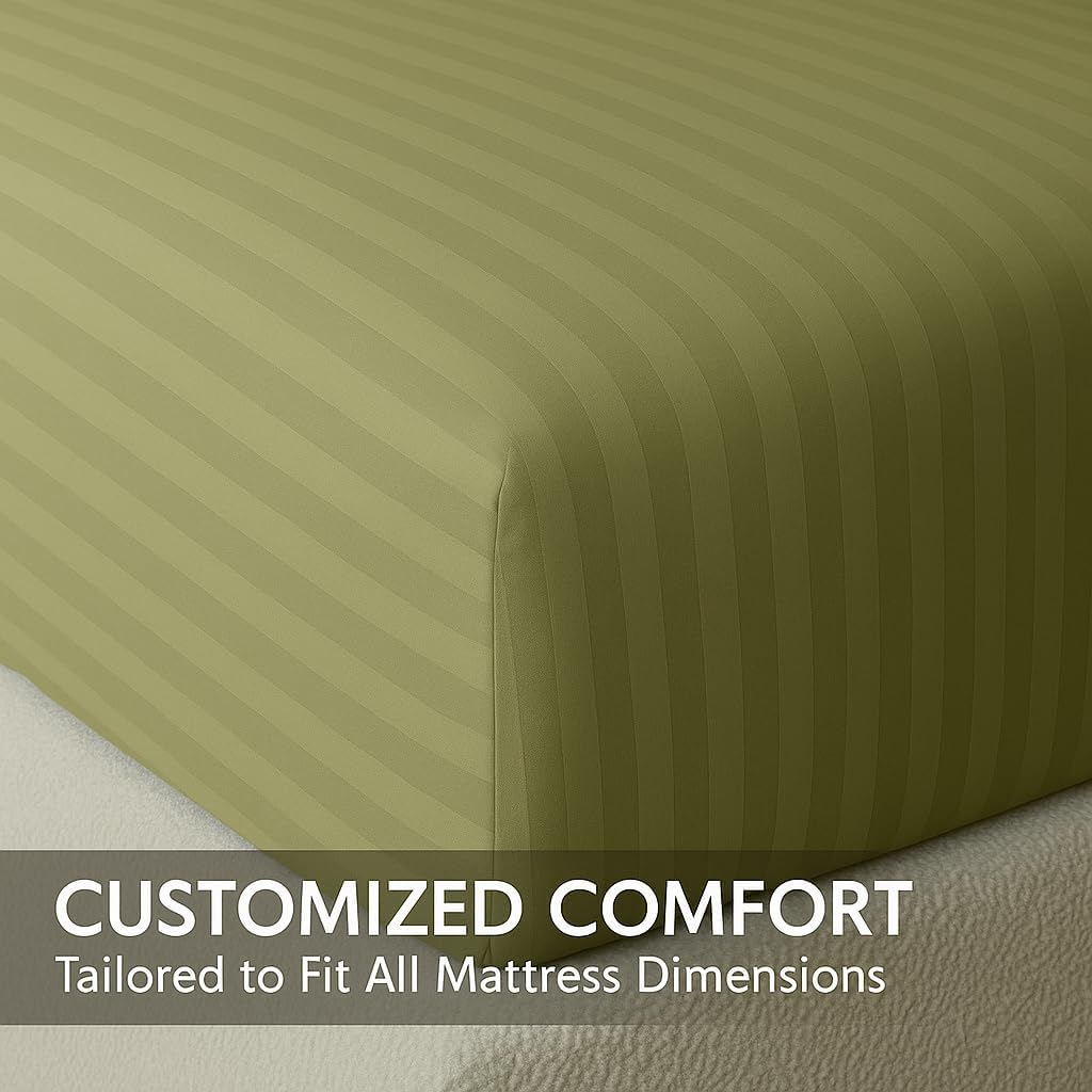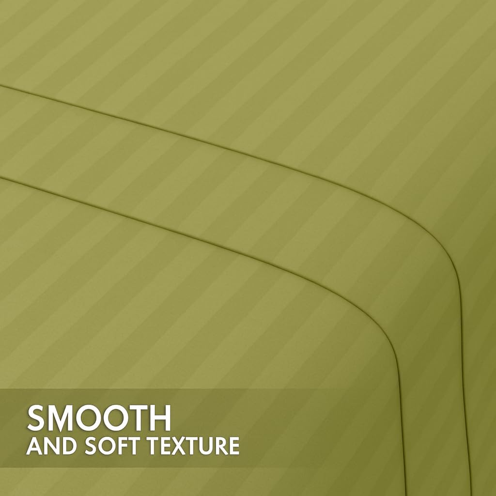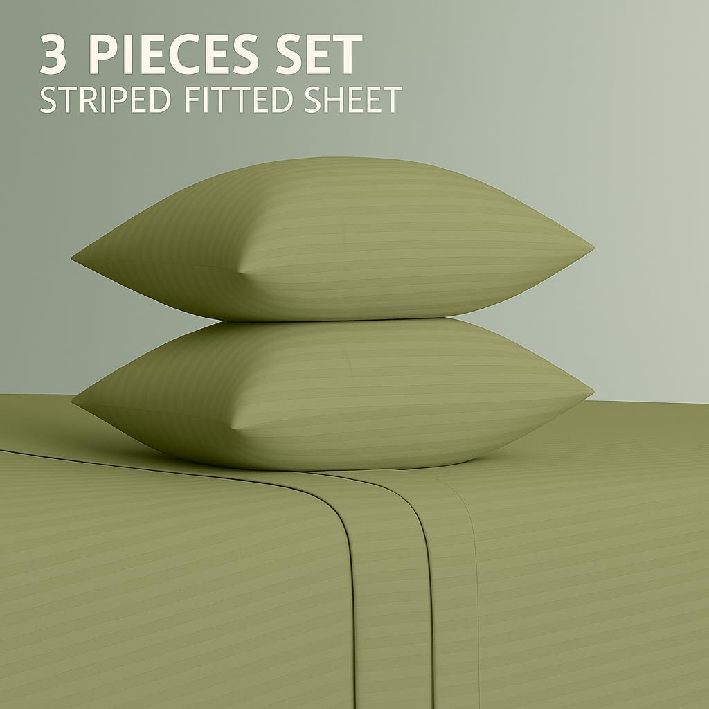 Home Mart Outlet Striped Microfiber Fitted Sheet Set – Double 120×200 cm – Olive Green Color – 1 Fitted Sheet & 2 Pillowcases (50×75 cm) – Deep Pocket, Soft, Durable, Wrinkle-Resistant Bedding Set