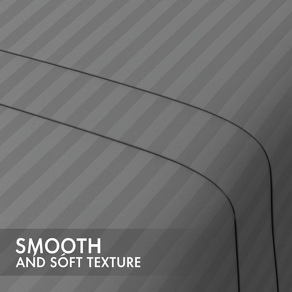 Home Mart Outlet Striped Microfiber Fitted Sheet Set – Super King 200×200 cm – Gray Color – 1 Fitted Sheet & 2 Pillowcases (50×75 cm) – Deep Pocket, Soft, Durable, Wrinkle-Resistant Bedding Set