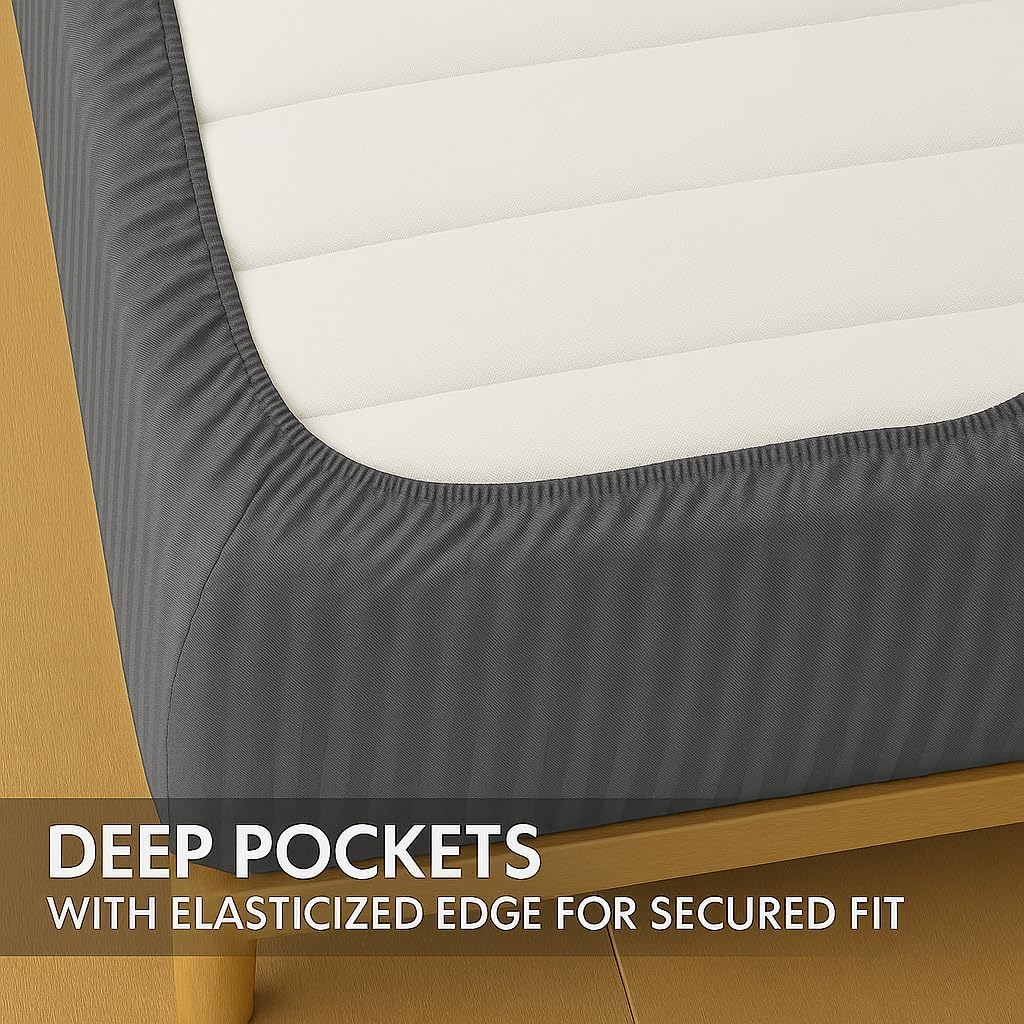 🛏️ Home Mart Outlet Striped Microfiber Fitted Sheet Set – Deep Pocket, Wrinkle-Free, Ultra-Soft Bed Sheets for Year-Round Comfort