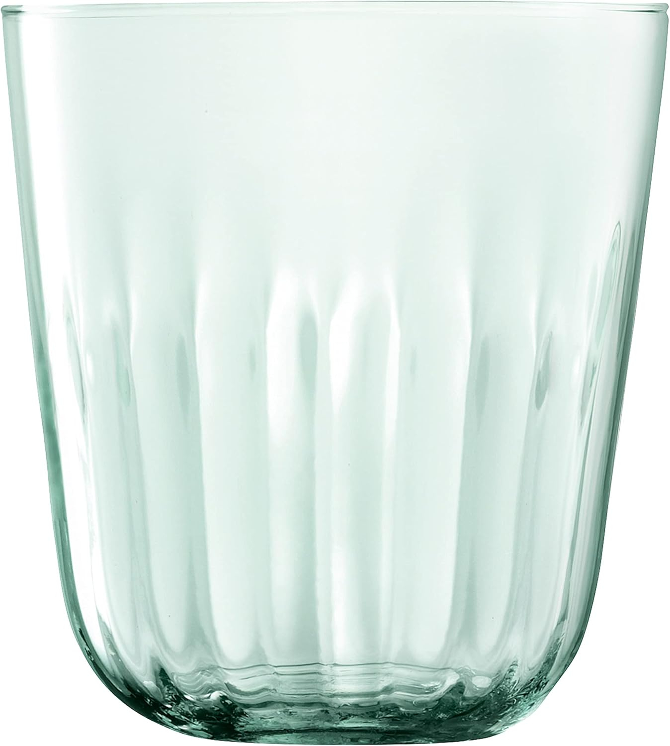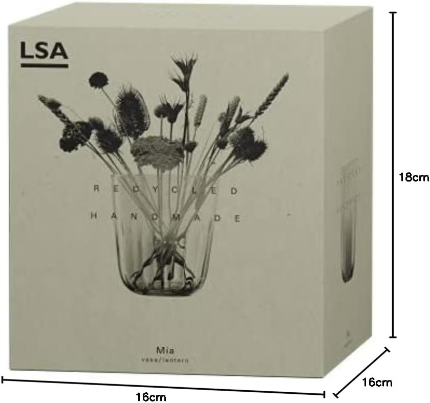 Recycled bottles and jars are crushed and heated until molten, then blown into specially-crafted moulds to create a vase/lantern with a subtly fluted texture.