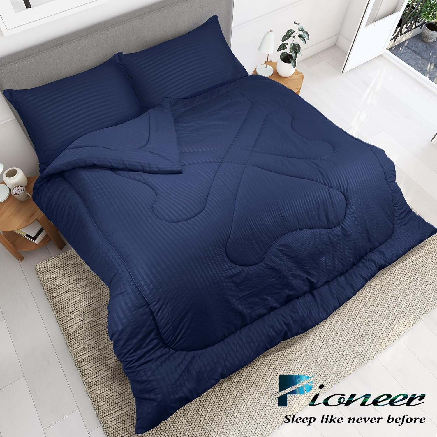 Pioneer Snore More Luxury Home Textiles Reversible Microfibre Comfortable Sleep Quilt Bedding duvet – All Season Comforters – Plush Siliconized Fiberfill (Navy Blue, Single : 160 x 220 cm, Pack of 3)