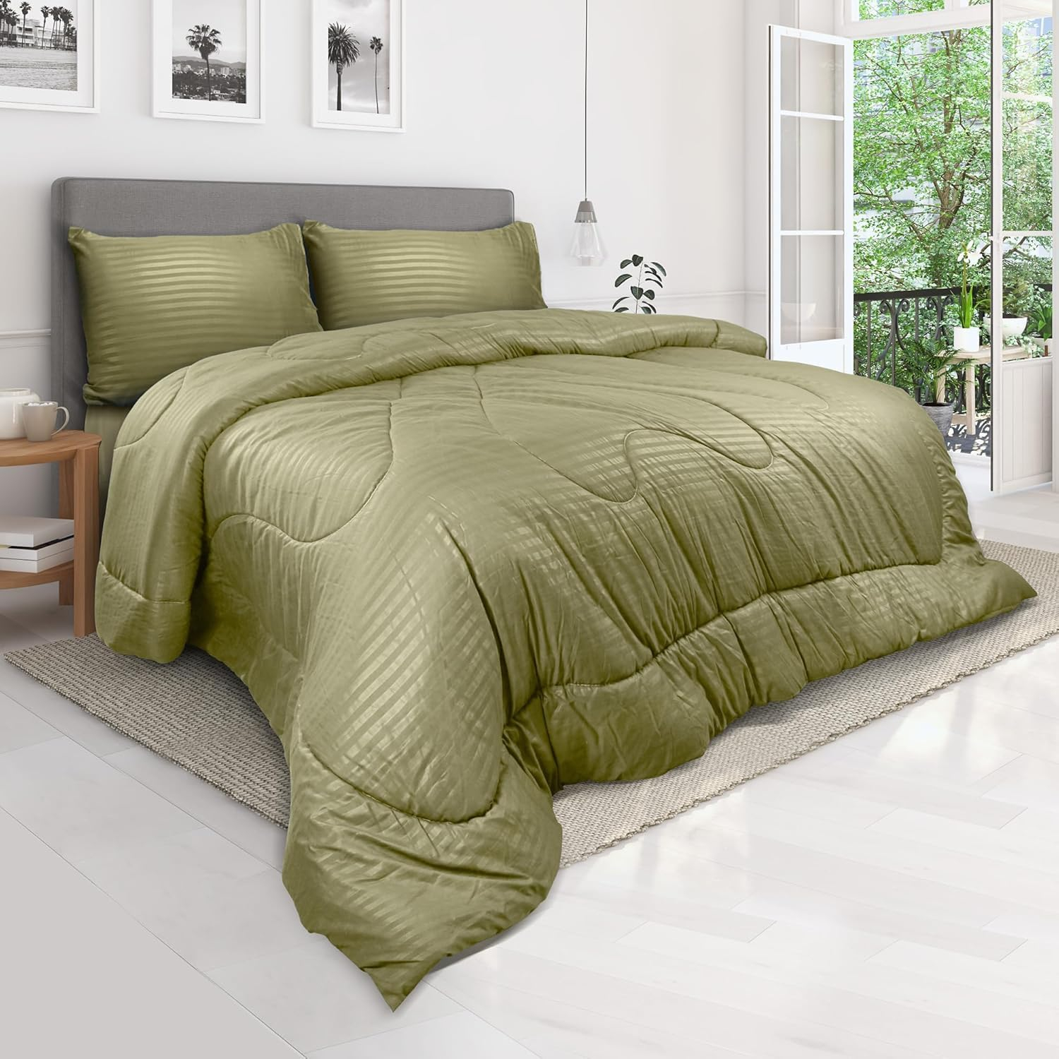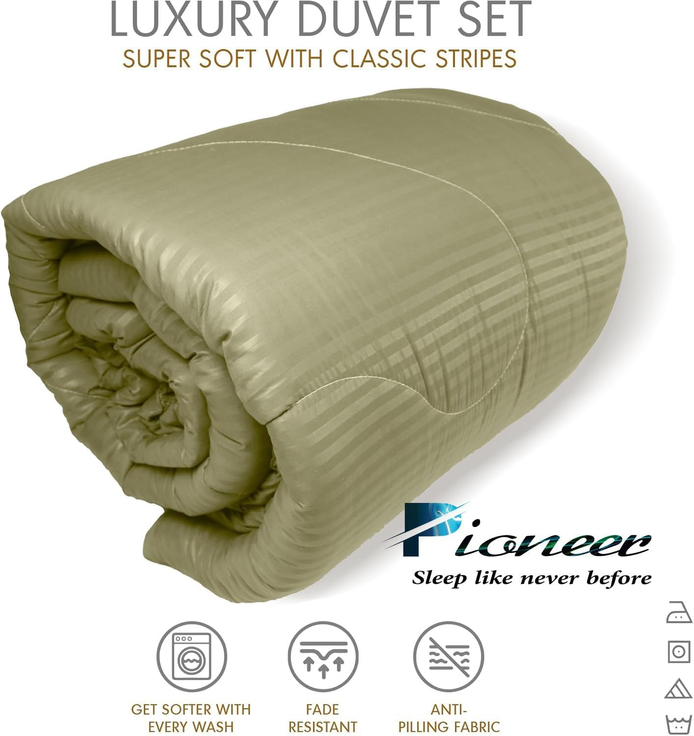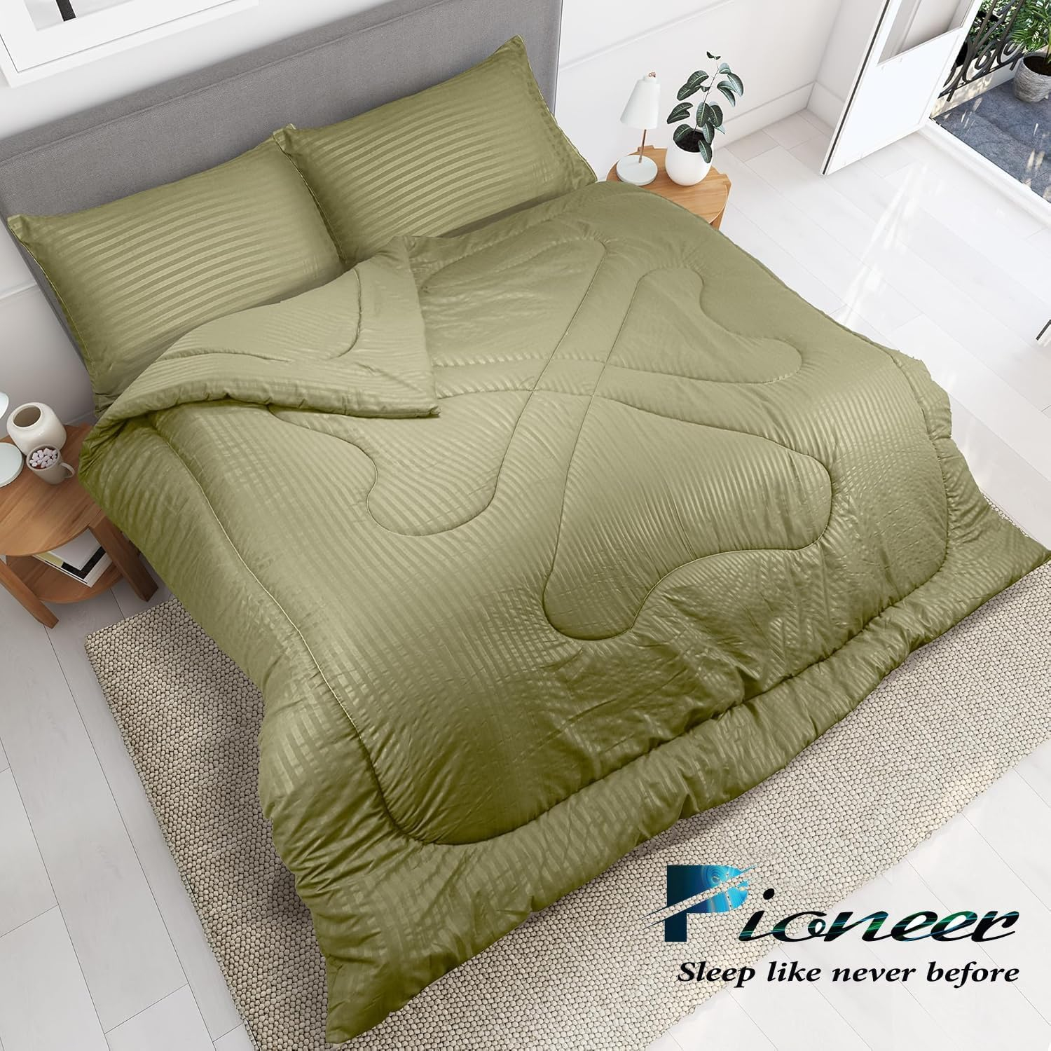Pioneer Snore More Luxury Home Textiles Reversible Microfibre Comfortable Sleep Quilt Bedding duvet – All Season Comforters – Plush Siliconized Fiberfill (Olive, King : 240 x 260 cm, Pack of 8)