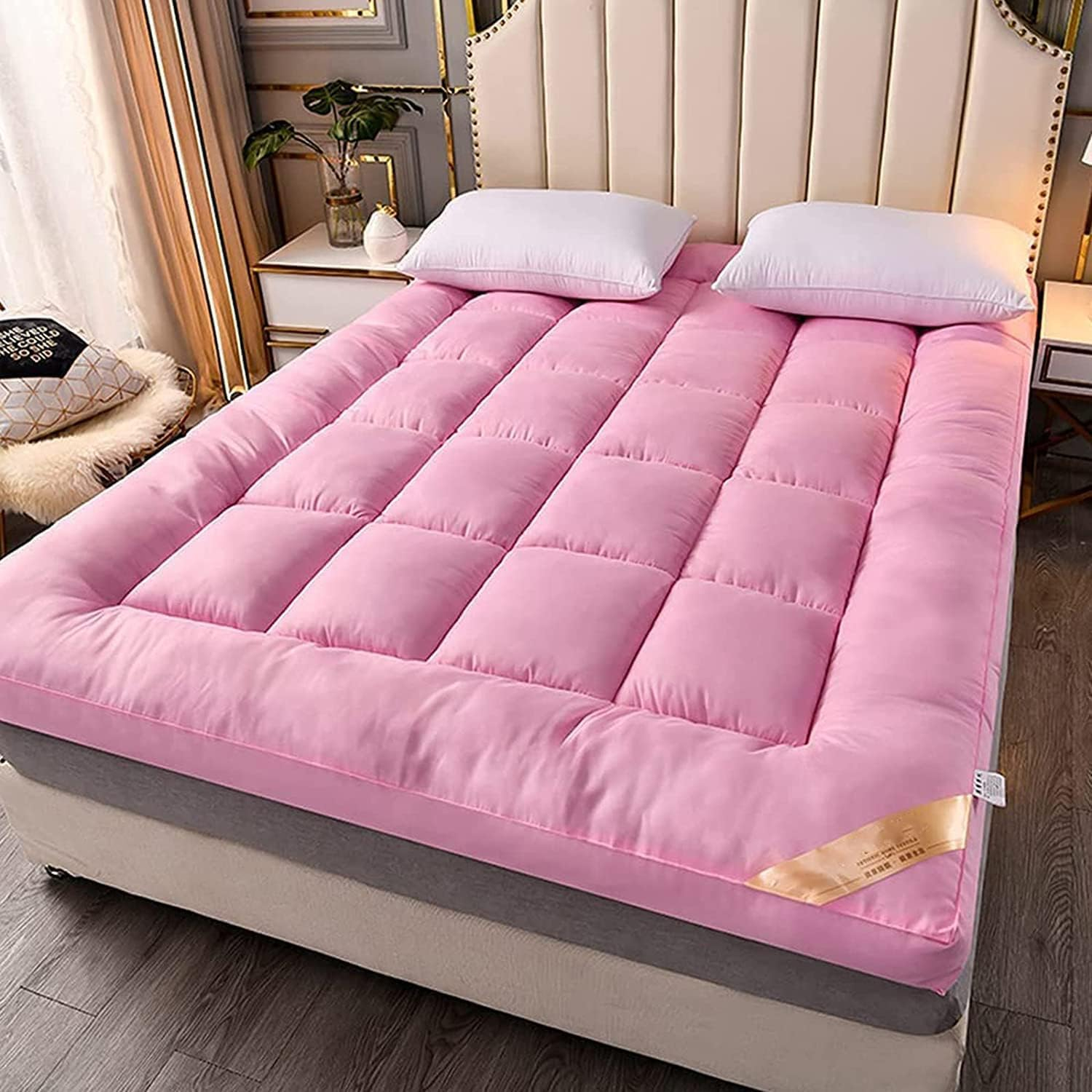 Pioneer Super Soft Material Mattress Topper, 85 Gsm Microfiber 1 cm Stripe – 500Gsm Soft, Firm, Extra Thick Fibersheet With 4 Sides Elastic Bands (Pink, Double – L200 x W120 cm)