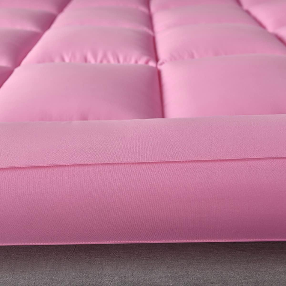 Pioneer Super Soft Material Mattress Topper, 85 Gsm Microfiber 1 cm Stripe – 500Gsm Soft, Firm, Extra Thick Fibersheet With 4 Sides Elastic Bands (Pink, Supper King – L200 x W200 cm)