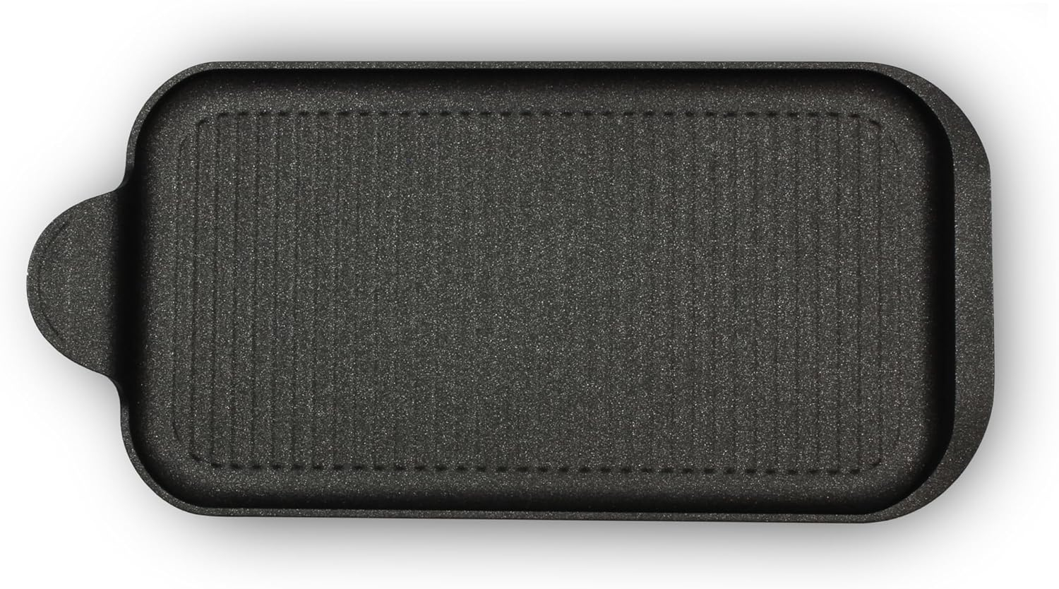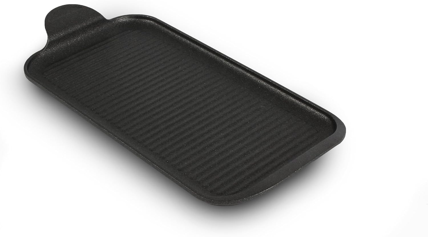 Cast aluminium construction ensures long life of the cookware, New triple-layer non-stick coating in addition to hardstone micro-minerals ensure high performance, Optimal thermal conductivity of the coating evenly spreads the heat to cook the delicacy to utmost perfection, High-performance cookware is easy to clean and maintain, Grill your food with utmost perfection with Risoli’s Finger grill Xylan Grill Pan. This grill is ideal for cooking finger foods for your evening tea parties or accompaniments for your dinners. The non-stick surface, paired with its crisp and elegant design makes it must-have in your cookware and tableware collection. It is designed to ensure that you serve nothing but the best as its thermal conductivity enables an even spread of heat, thus making sure your dishes get an adequate amount of heat. The grill is modelled to fit directly into your oven for easy cooking. Brand: Risoli, Type: Grill Pans, Model Number: OP0114/32TP0, Color: Black, Material: Aluminium, Dimensions: 32 x 15 cm, Compatible Stove Types: Gas; Electric; Glass Ceramic; Oven.