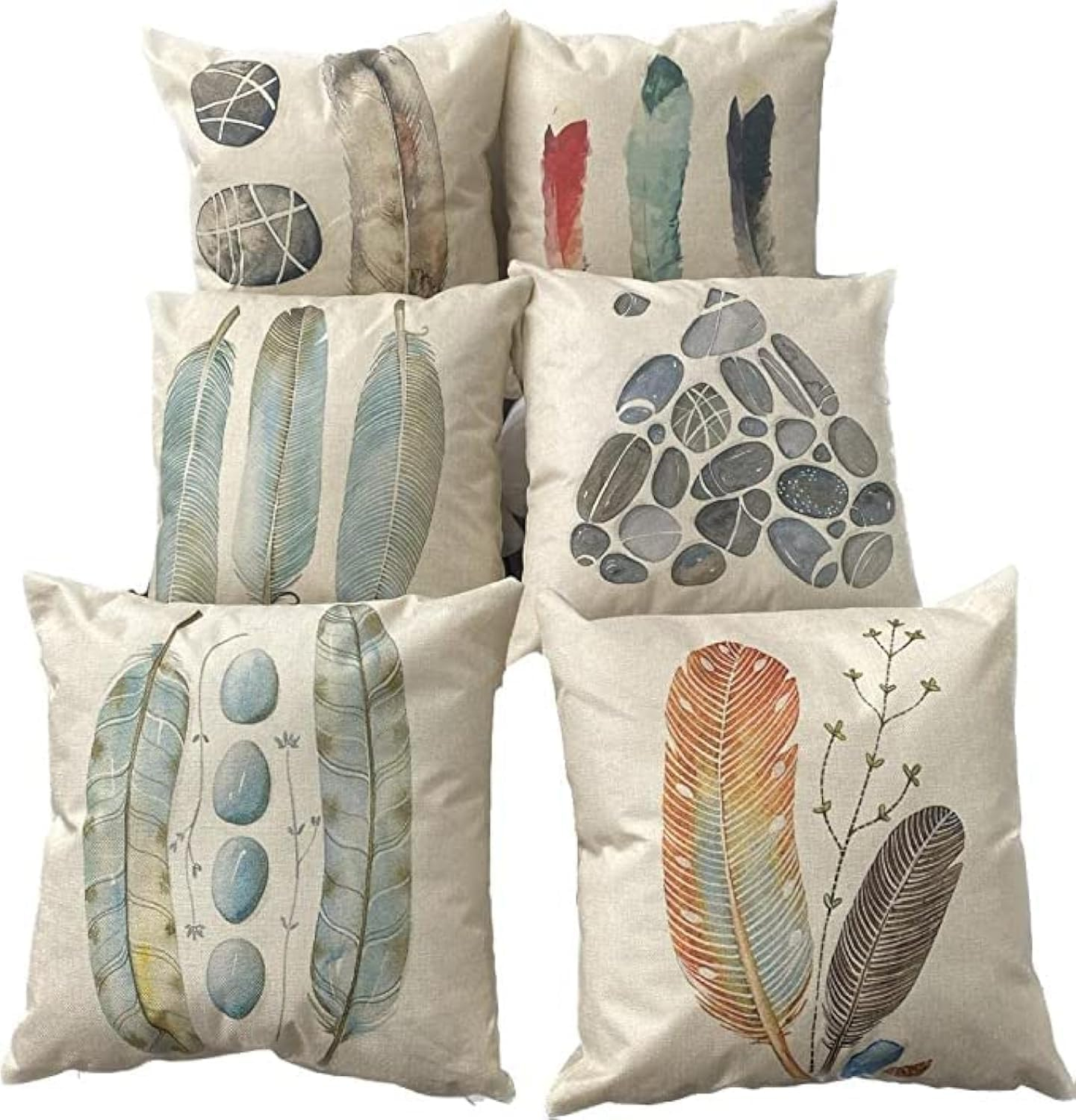 Throw Pillow Covers 45x45cm Decorative Pillow Cushion Cases Linen Pillowcases Covers for Sofa Couch Car Bedroom Living Room Home Decor Set of 6 Design