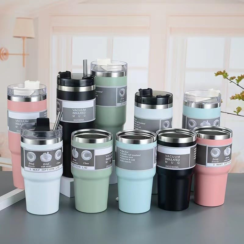 vacuum insulated cup w/leak proof Lid 3 way option lid, BPA Free,Insulated double wall for Hot and Cold Drinks 18/8 Stainless Steel Cup 600ML Rapid Lock / Smooth 6 Hours Hot /12 Hours Cold Colours: black