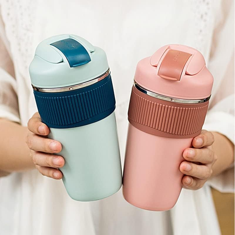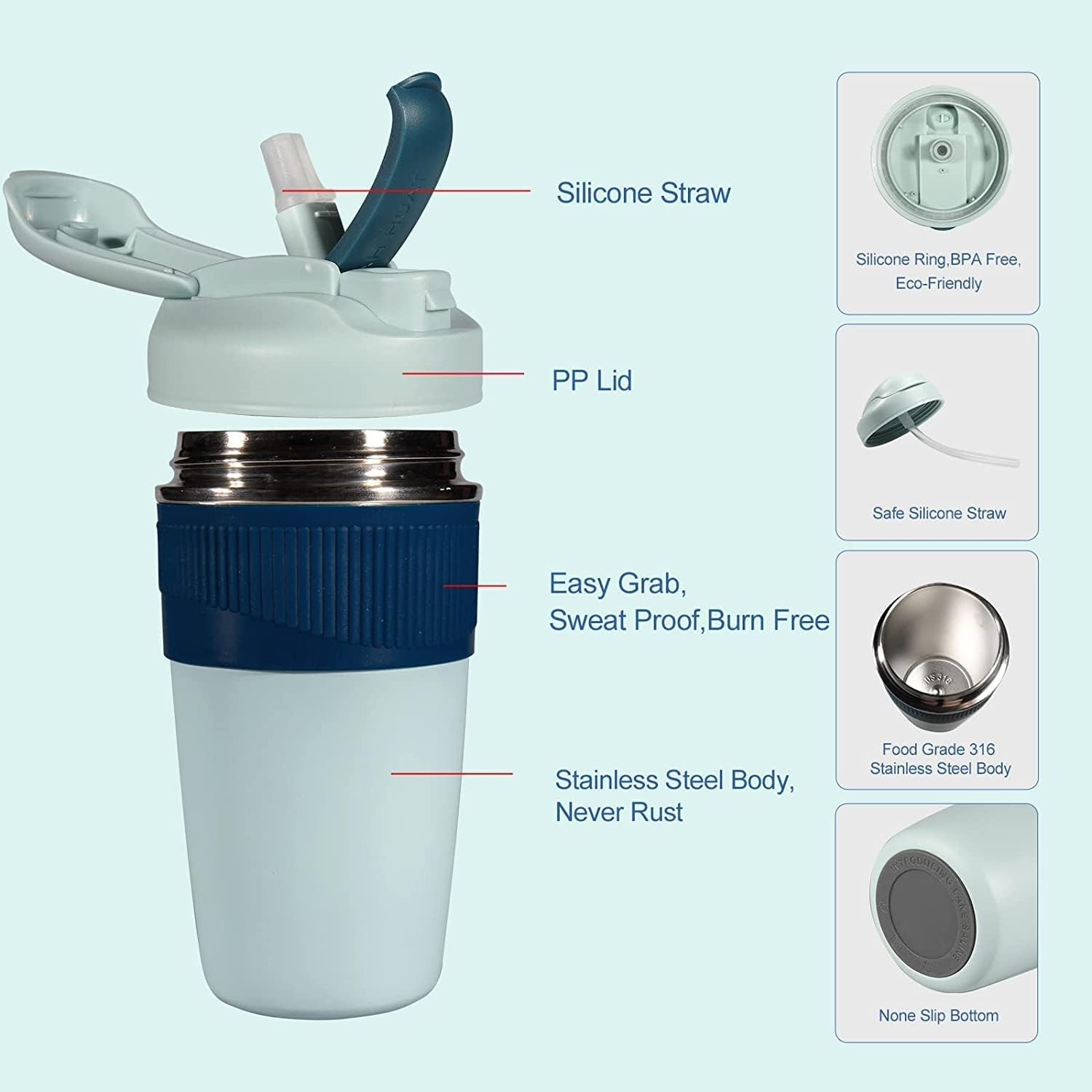 vacuum insulated mug double wall with Portable Lid with straw , BPA Free, Hydro Insulated Thermal Flask for Hot and Cold Drinks 18/8 Stainless Steel Cup 480ML Rapid Lock / Smooth 8 Hours Hot / 20 Hours Cold Colours: blue